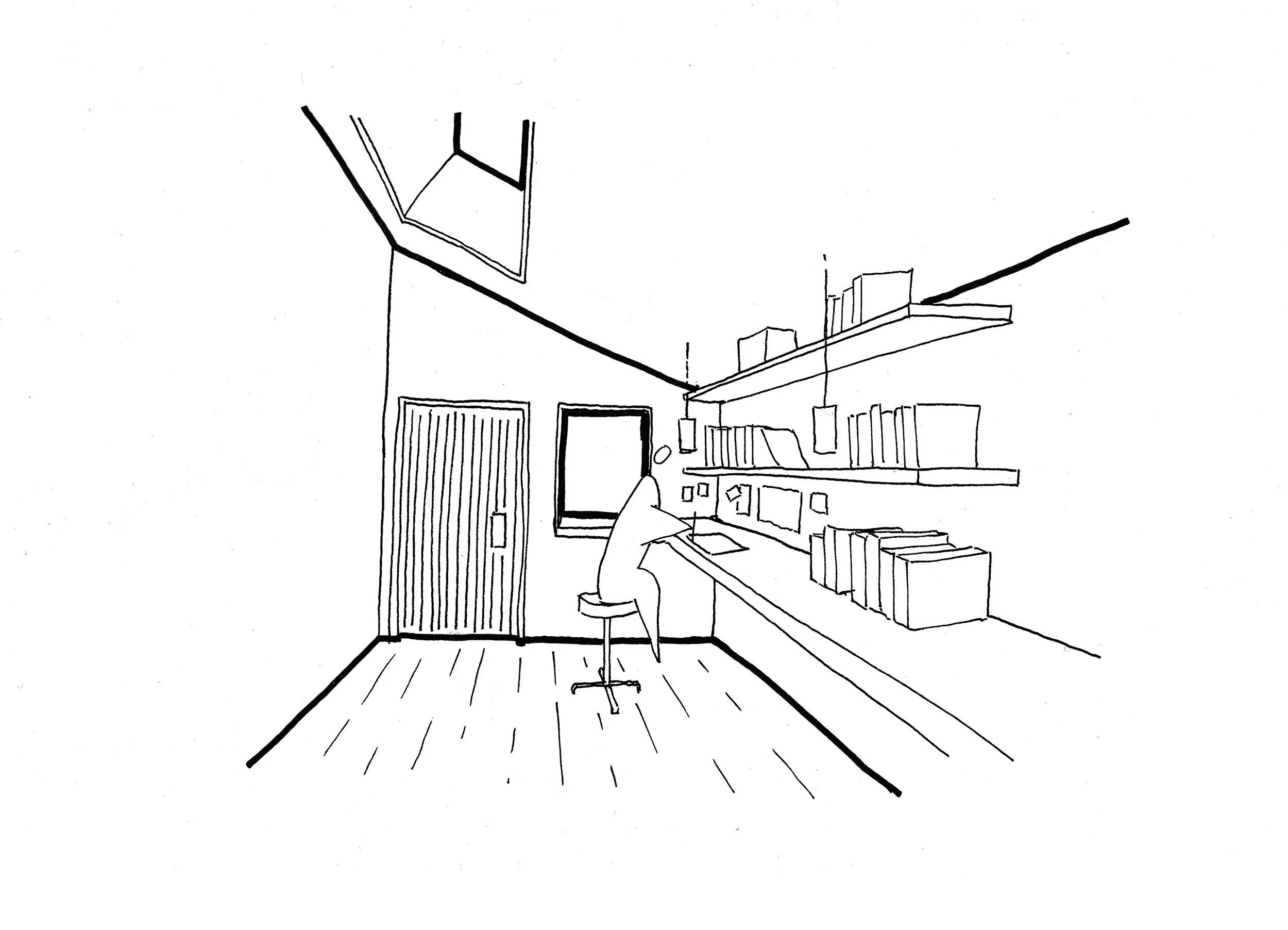 Side brick house extension to an existing dwelling to create a working studio for an illustrator.